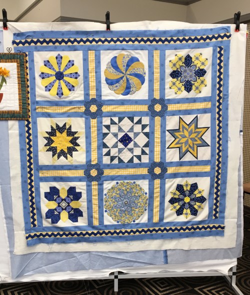 Last year the colours were blue and yellow, the colours of the Anti-Cancer Council of Australia, and this is one of the small quilts.