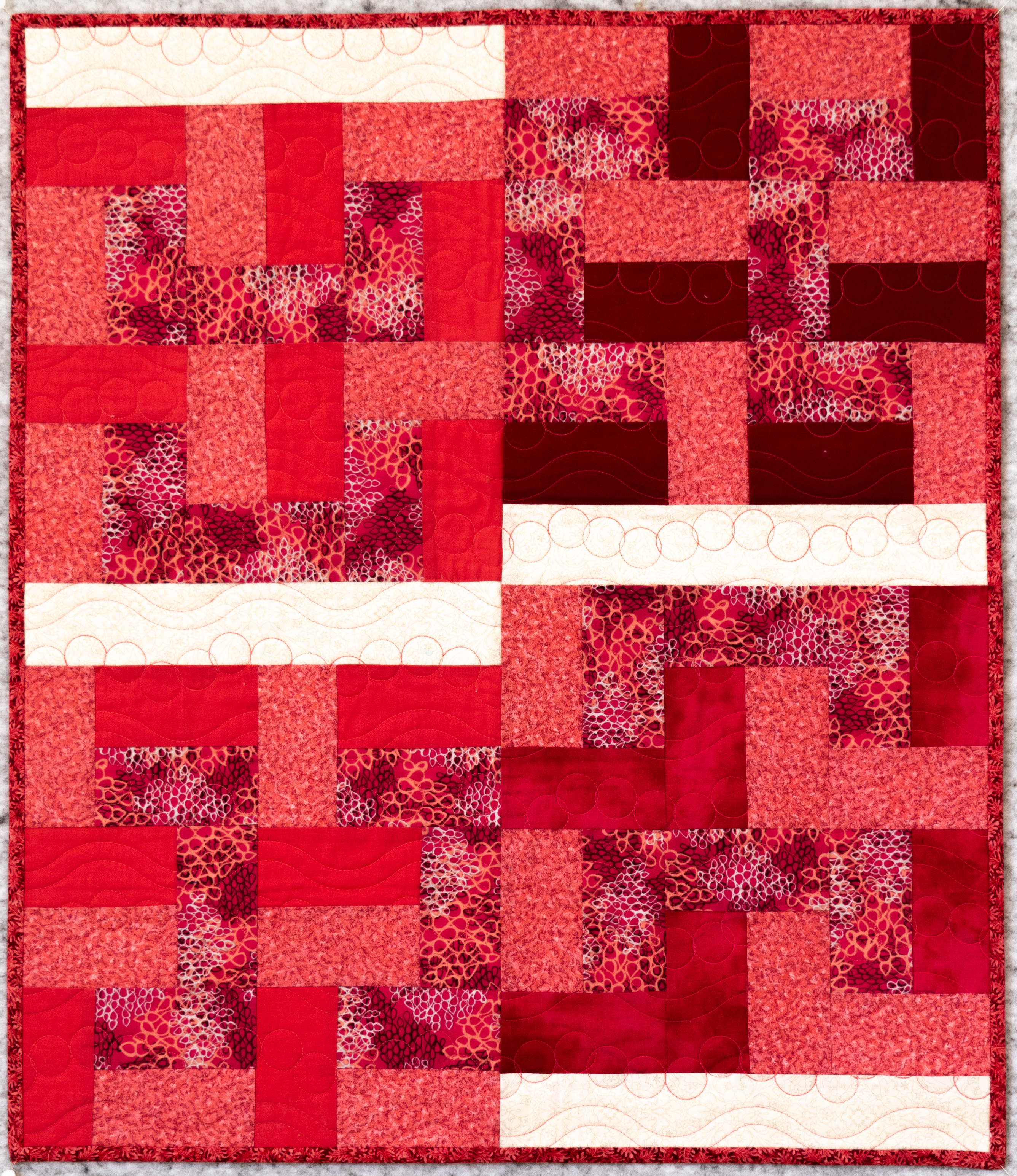 Quilting is with Westalee’s‘Simple Circles’ 1″ circle and Hobby Quilt’s ‘Wave & Scallop’. Makes for a lovely design.