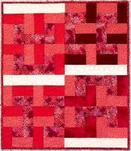These four blocks are each made up of 6 units (3 patches in a unit) and have been extended with the plain strip to make it large enough for a baby-sized charity quilt. Now at 24″ x 28″, it meets the requirements for a ‘hospital give-away’ via my guild.