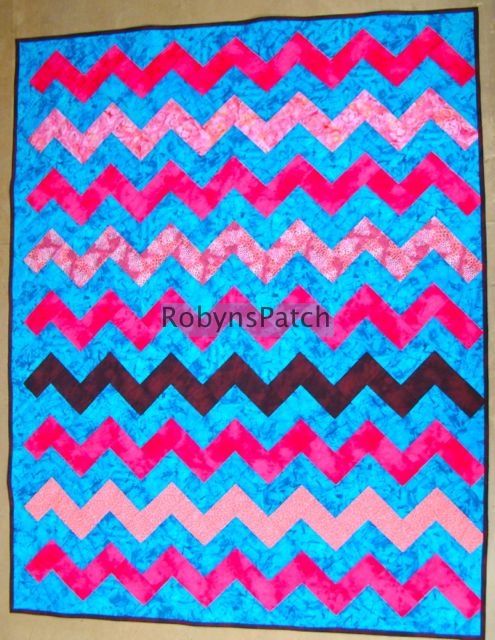 Added a small rectangle to the top or bottom of each rectangle, then a sashing in between to join them together, followed by a border all around. As it is a dark top, a grey wadding/batting was needed.