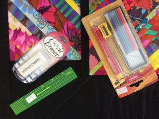 Using a chalk pencil to mark the quilt, and sewing with Wonderfil’s Spagetti 12wt black thread on a black fabric, even under lights, takes concentration.