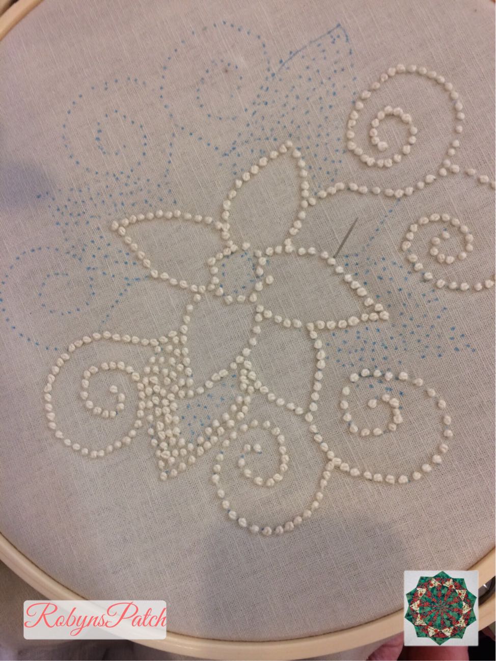 Sue C – our stitchery expert – shows how it’s done with another completed block.