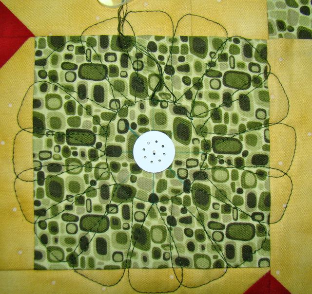 Quilting is with Westalee’s‘Simple Circles’ 1″ circle and Hobby Quilt’s ‘Wave & Scallop’. Makes for a lovely design.