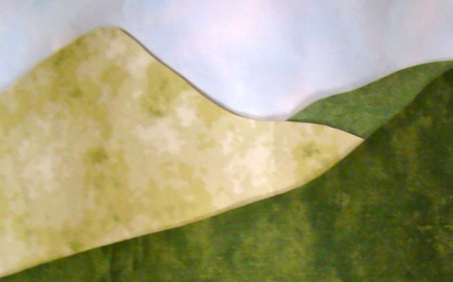 Sara cut and pinned her hills by fussy cutting from an ombre fabric.