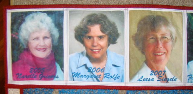 This quilt by Deb Layt (2014), is a tribute to the first decade of winners of this prestigious award. She has incorporated her ‘GeoWeb’ machine quilting technique and photo transfer printing, along with class sample pieces for this unique wall hanging.